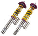 Designed to maximize the performance on vehicles with DOT-R and other ultra high-performance tire setups. KW V3 Clubsport coilovers are the ideal choice for double-duty street cars, use at HPDE's(high performance drivers education), time attack or time trials, and club level racing. The Clubsport setup was specially designed on the Nordschleife and the continuous adjustable ride height allows for fine corner weight or making setup changes. The TVR-A and TVC-A valve technology -provide an unmatched level of separately adjustable damping for the rebound and compression enabling a customized set up appropriate for the vehicle's modifications such as weight, tire characteristics, and other various conditions. The KW V3 Clubsport INOX-LINE coilover kit is the ideal tool for performance-oriented drivers and experienced tuning enthusiasts who place a strong emphasis on the overall performance of their suspension. The KW V3 Clubsport features patented TVR-A and TVC-A technology -hat provides separately adjustable rebound and compression damping. The extensive Adjustment -angle of the independently configurable rebound and compression make it easy to directly influence the steering behavior, directional stability, grip and handling characteristics for confident and repeatable results at the limit of driving dynamics.