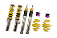 Cutting-edge motorsports technology for more performance on the road. Like every suspension product developed by KW automotive, the suspension manufacturer, and manufactured in Germany, the KW V3 Coilover suspension kit also provides a significant plus in safety reserves in road traffic. Thanks to the chassis with its high-quality dampers, springs, and elastomer spring elements, pitching and rolling movements during load changes such as evasive maneuvers, cornering, acceleration, and braking are significantly reduced. The braking distances are also shortened. Thanks to improved support and feedback, drivers not only feel safer but driving in everyday life becomes even safer. With compression and rebound stage damping, that can be set separately and independently of each other, the damper setup can be customized to your personal driving preferences or vehicle changes such as weight, tire characteristics, or altered vehicle rigidity. True performance optimization is only possible with this unique, patented system. For example, this allows the compression damping force to be increased and get more grip from the tires, to improve cornering behavior and reduce squat without simultaneously altering the rebound stage damping which is optimally matched to the spring rate, a scenario which results in reduced grip and the associated loss of performance. The KW V3 coilover kit is the ideal tool for performance-oriented drivers and experienced tuning enthusiasts who place a strong emphasis on the overall performance of their suspension. The Variant 3 features patented TVR-A and TVC-A technology that provides separately adjustable reboun d and compression damping. The extensive adjustment range of the independently configurable rebound and compression make it easy to directly influence the steering behavior, directional stability, grip and handling characteristics for confident and repeatable results at the limit of driving dynamics.