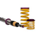 Cutting-edge motorsports technology for more performance on the road. Like every suspension product developed by KW automotive, the suspension manufacturer, and manufactured in Germany, the KW V3 Coilover suspension kit also provides a significant plus in safety reserves in road traffic. Thanks to the chassis with its high-quality dampers, springs, and elastomer spring elements, pitching and rolling movements during load changes such as evasive maneuvers, cornering, acceleration, and braking are significantly reduced. The braking distances are also shortened. Thanks to improved support and feedback, drivers not only feel safer but driving in everyday life becomes even safer. With compression and rebound stage damping, that can be set separately and independently of each other, the damper setup can be customized to your personal driving preferences or vehicle changes such as weight, tire characteristics, or altered vehicle rigidity. True performance optimization is only possible with this unique, patented system. For example, this allows the compression damping force to be increased and get more grip from the tires, to improve cornering behavior and reduce squat without simultaneously altering the rebound stage damping which is optimally matched to the spring rate, a scenario which results in reduced grip and the associated loss of performance. The KW V3 coilover kit is the ideal tool for performance-oriented drivers and experienced tuning enthusiasts who place a strong emphasis on the overall performance of their suspension. The Variant 3 features patented TVR-A and TVC-A technology that provides separately adjustable rebound and compression damping. The extensive adjustment range of the independently configurable rebound and compression make it easy to directly influence the steering behavior, directional stability, grip and handling characteristics for confident and repeatable results at the limit of driving dynamics.