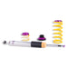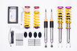 Cutting-edge motorsports technology for more performance on the road. Like every suspension product developed by KW automotive, the suspension manufacturer, and manufactured in Germany, the KW V3 Coilover suspension kit also provides a significant plus in safety reserves in road traffic. Thanks to the chassis with its high-quality dampers, springs, and elastomer spring elements, pitching and rolling movements during load changes such as evasive maneuvers, cornering, acceleration, and braking are significantly reduced. The braking distances are also shortened. Thanks to improved s upport and feedback, drivers not only feel safer but driving in everyday life becomes even safer. With compression and rebound stage damping, that can be set separately and independently of each other, the damper setup can be customized to your personal driving preferences or vehicle changes such as weight, tire characteristics, or altered vehicle rigidity. True performance optimization is only possible with this unique, patented system. For example, this allows the compression damping force to be increased and get more grip from the tires, to improve cornering behavior and reduce squat without simultaneously altering the rebound stage damping which is optimally matched to the spring rate, a scenario which results in reduced grip and the associated loss of performance. The KW V3 coilover kit is the ideal tool for performance-oriented drivers and experienced tuning enthusiasts who place a strong emphasis on the overall performance of their suspension. The Variant 3 features patented TVR-A and TVC-A technology that provides separately adjustable rebound and compression damping. The extensive adjustment range of the independently configurable rebound and compression make it easy to directly influence the steering behavior, directional stability, grip and handling characteristics for confident and repeatable results at the limit of driving dynamics.