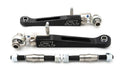 S550-Series Ford Shelby GT500 Mustang Front Lower Control Arms (FLCA) provide roll center, camber, and track width adjustment and allow for full articulation with the proper ball joint angle. The main arm is slotted to allow the use of pinch bolts, and our rotating clamps on SPL Parts' exclusive Double Adjuster lock down camber and track width settings. No more jam nuts!! Long gone are the days of fumbling with multiple wrenches to tighten jam nuts in place while trying to keep your bearings oriented correctly. Our Double Adjuster is machined from 4130 Chromoly, gun drilled to reduce weight, then electroless nickel plated for corrosion resistance. Blue Anodized Titanium hardware shaves even more unsprung weight from the arms without compromising strength. Stainless Steel spacers are provided to correct roll center for lowered vehicles. The use of FK Rod Ends and High Misalignment Spherical Bearings eliminates the flex and binding found in the OEM control arms, while allowing smooth articulation. Sold as a pair.Made in the USA!