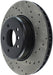 StopTech Drilled Sport Rotors are 1-piece direct replacement brake discs for factory brake systems and stock calipers that look great behind your wheels – and offer significantly improved braking performance. The unique cross-drilling aids with heat and brake dust dispersal; prevents glazing of the pads; adds bite and improves wet and dry braking performance. Built to last; the black e-coating provides protection from corrosion and the high carbon metallurgy (in most applications) offers quieter operation; better crack resistance and increased performance.