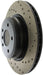 StopTech Drilled Sport Rotors are 1-piece direct replacement brake discs for factory brake systems and stock calipers that look great behind your wheels – and offer significantly improved braking performance. The unique cross-drilling aids with heat and brake dust dispersal; prevents glazing of the pads; adds bite and improves wet and dry braking performance. Built to last; the black e-coating provides protection from corrosion and the high carbon metallurgy (in most applications) offers quieter operation; better crack resistance and increased performance.