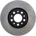 StopTech Drilled Sport Rotors are 1-piece direct replacement brake discs for factory brake systems and stock calipers that look great behind your wheels – and offer significantly improved braking performance. The unique cross-drilling aids with heat and brake dust dispersal; prevents glazing of the pads; adds bite and improves wet and dry braking performance. Built to last; the black e-coating provides protection from corrosion and the high carbon metallurgy (in most applications) offers quieter operation; better crack resistance and increased performance.