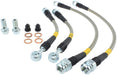 StopTech Stainless Steel Braided Brake Lines provide a quicker; firmer; more consistent pedal response by maintaining consistent brake pressure. Additionally; stainless steel lines provide precision brake modulation; especially during threshold braking. The improvement in pedal feel is more dramatic on older vehicles where the factory rubber line may have softened and swelled due to age. A variety of end fittings are available to meet application needs. All fittings are engineered for proper fit and durability. All necessary brackets and fasteners are included with each line kit.