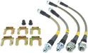 StopTech Stainless Steel Braided Brake Lines provide a quicker; firmer; more consistent pedal response by maintaining consistent brake pressure. Additionally; stainless steel lines provide precision brake modulation; especially during threshold braking. The improvement in pedal feel is more dramatic on older vehicles where the factory rubber line may have softened and swelled due to age. A variety of end fittings are available to meet application needs. All fittings are engineered for proper fit and durability. All necessary brackets and fasteners are included with each line kit.