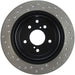 StopTech Drilled Sport Rotors are 1-piece direct replacement brake discs for factory brake systems and stock calipers that look great behind your wheels – and offer significantly improved braking performance. The unique cross-drilling aids with heat and brake dust dispersal; prevents glazing of the pads; adds bite and improves wet and dry braking performance. Built to last; the black e-coating provides protection from corrosion and the high carbon metallurgy (in most applications) offers quieter operation; better crack resistance and increased performance.