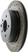 StopTech Drilled Sport Rotors are 1-piece direct replacement brake discs for factory brake systems and stock calipers that look great behind your wheels – and offer significantly improved braking performance. The unique cross-drilling aids with heat and brake dust dispersal; prevents glazing of the pads; adds bite and improves wet and dry braking performance. Built to last; the black e-coating provides protection from corrosion and the high carbon metallurgy (in most applications) offers quieter operation; better crack resistance and increased performance.