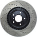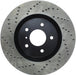 StopTech Drilled Sport Rotors are 1-piece direct replacement brake discs for factory brake systems and stock calipers that look great behind your wheels – and offer significantly improved braking performance. The unique cross-drilling aids with heat and brake dust dispersal; prevents glazing of the pads; adds bite and improves wet and dry braking performance. Built to last; the black e-coating provides protection from corrosion and the high carbon metallurgy (in most applications) offers quieter operation; better crack resistance and increased performance.