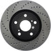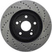 StopTech Drilled Sport Rotors are 1-piece direct replacement brake discs for factory brake systems and stock calipers that look great behind your wheels – and offer significantly improved braking performance. The unique cross-drilling aids with heat and brake dust dispersal; prevents glazing of the pads; adds bite and improves wet and dry braking performance. Built to last; the black e-coating provides protection from corrosion and the high carbon metallurgy (in most applications) offers quieter operation; better crack resistance and increased performance.