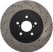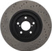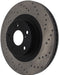 StopTech Drilled Sport Rotors are 1-piece direct replacement brake discs for factory brake systems and stock calipers that look great behind your wheels – and offer significantly improved braking performance. The unique cross-drilling aids with heat and brake dust dispersal; prevents glazing of the pads; adds bite and improves wet and dry braking performance. Built to last; the black e-coating provides protection from corrosion and the high carbon metallurgy (in most applications) offers quieter operation; better crack resistance and increased performance.
