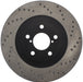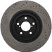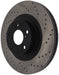 StopTech Drilled Sport Rotors are 1-piece direct replacement brake discs for factory brake systems and stock calipers that look great behind your wheels – and offer significantly improved braking performance. The unique cross-drilling aids with heat and brake dust dispersal; prevents glazing of the pads; adds bite and improves wet and dry braking performance. Built to last; the black e-coating provides protection from corrosion and the high carbon metallurgy (in most applications) offers quieter operation; better crack resistance and increased performance.