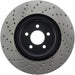 StopTech Drilled Sport Rotors are 1-piece direct replacement brake discs for factory brake systems and stock calipers that look great behind your wheels – and offer significantly improved braking performance. The unique cross-drilling aids with heat and brake dust dispersal; prevents glazing of the pads; adds bite and improves wet and dry braking performance. Built to last; the black e-coating provides protection from corrosion and the high carbon metallurgy (in most applications) offers quieter operation; better crack resistance and increased performance.