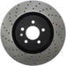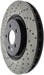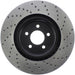 StopTech Drilled Sport Rotors are 1-piece direct replacement brake discs for factory brake systems and stock calipers that look great behind your wheels – and offer significantly improved braking performance. The unique cross-drilling aids with heat and brake dust dispersal; prevents glazing of the pads; adds bite and improves wet and dry braking performance. Built to last; the black e-coating provides protection from corrosion and the high carbon metallurgy (in most applications) offers quieter operation; better crack resistance and increased performance.