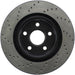 StopTech Drilled Sport Rotors are 1-piece direct replacement brake discs for factory brake systems and stock calipers that look great behind your wheels – and offer significantly improved braking performance. The unique cross-drilling aids with heat and brake dust dispersal; prevents glazing of the pads; adds bite and improves wet and dry braking performance. Built to last; the black e-coating provides protection from corrosion and the high carbon metallurgy (in most applications) offers quieter operation; better crack resistance and increased performance.