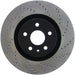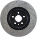 StopTech Drilled Sport Rotors are 1-piece direct replacement brake discs for factory brake systems and stock calipers that look great behind your wheels – and offer significantly improved braking performance. The unique cross-drilling aids with heat and brake dust dispersal; prevents glazing of the pads; adds bite and improves wet and dry braking performance. Built to last; the black e-coating provides protection from corrosion and the high carbon metallurgy (in most applications) offers quieter operation; better crack resistance and increased performance.