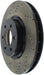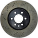 StopTech Drilled Sport Rotors are 1-piece direct replacement brake discs for factory brake systems and stock calipers that look great behind your wheels – and offer significantly improved braking performance. The unique cross-drilling aids with heat and brake dust dispersal; prevents glazing of the pads; adds bite and improves wet and dry braking performance. Built to last; the black e-coating provides protection from corrosion and the high carbon metallurgy (in most applications) offers quieter operation; better crack resistance and increased performance.