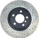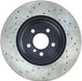 StopTech Drilled Sport Rotors are 1-piece direct replacement brake discs for factory brake systems and stock calipers that look great behind your wheels – and offer significantly improved braking performance. The unique cross-drilling aids with heat and brake dust dispersal; prevents glazing of the pads; adds bite and improves wet and dry braking performance. Built to last; the black e-coating provides protection from corrosion and the high carbon metallurgy (in most applications) offers quieter operation; better crack resistance and increased performance.