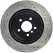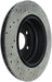 StopTech Drilled Sport Rotors are 1-piece direct replacement brake discs for factory brake systems and stock calipers that look great behind your wheels – and offer significantly improved braking performance. The unique cross-drilling aids with heat and brake dust dispersal; prevents glazing of the pads; adds bite and improves wet and dry braking performance. Built to last; the black e-coating provides protection from corrosion and the high carbon metallurgy (in most applications) offers quieter operation; better crack resistance and increased performance.