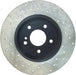 StopTech Drilled Sport Rotors are 1-piece direct replacement brake discs for factory brake systems and stock calipers that look great behind your wheels – and offer significantly improved braking performance. The unique cross-drilling aids with heat and brake dust dispersal; prevents glazing of the pads; adds bite and improves wet and dry braking performance. Built to last; the black e-coating provides protection from corrosion and the high carbon metallurgy (in most applications) offers quieter operation; better crack resistance and increased performance.