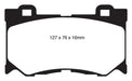 EBC Yellowstuff is an aramid fibre based brake compound with high brake effect form cold and is possibly one of the first ever compounds that can be used for STREET AND TRACK DRIVING. These pads do not require warm up but do get even stronger under the heat of hard driving. These are not a low dust pad and if your desire is for a low dust premium street use pad, you should consider EBC Redstuff.When considering full race use, Yellowstuff has been a strong favourite, having been used for two years in the Swedish Camaro Cup and at numerous other race events where a stock caliper system is fitted.It is also the choice of 90-percent of the Mazda MX5 Miata competitors in the UK race series and has an unblemished record as rotor friendly track pad for vehicles up to 2000 lbs weight or 200 BHP.In the USA the SCCA and NASA drivershave been testing Yellowstuff with feedback and good reports POURING in from a 543 test driver major market proving event with these groups. Read that figure again 543 test drivers.There is no guesswork here.