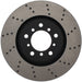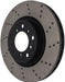 StopTech Drilled Sport Rotors are 1-piece direct replacement brake discs for factory brake systems and stock calipers that look great behind your wheels – and offer significantly improved braking performance. The unique cross-drilling aids with heat and brake dust dispersal; prevents glazing of the pads; adds bite and improves wet and dry braking performance. Built to last; the black e-coating provides protection from corrosion and the high carbon metallurgy (in most applications) offers quieter operation; better crack resistance and increased performance.