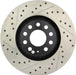StopTech Drilled and Slotted Sport Rotors are 1-piece direct replacement brake discs for factory brake systems and stock calipers that look great behind your wheels – and offer significantly improved braking performance. The unique cross-drilling and slotting aids with heat and brake dust dispersal; prevents glazing of the pads; adds bite and improves wet and dry braking performance. Built to last; the black e-coating provides protection from corrosion and the high carbon metallurgy (in most applications) offers quieter operation; better crack resistance and increased performance.