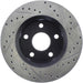 StopTech Drilled Sport Rotors are 1-piece direct replacement brake discs for factory brake systems and stock calipers that look great behind your wheels – and offer significantly improved braking performance. The unique cross-drilling aids with heat and brake dust dispersal; prevents glazing of the pads; adds bite and improves wet and dry braking performance. Built to last; the black e-coating provides protection from corrosion and the high carbon metallurgy (in most applications) offers quieter operation; better crack resistance and increased performance.