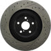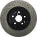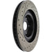 StopTech Drilled and Slotted Sport Rotors are 1-piece direct replacement brake discs for factory brake systems and stock calipers that look great behind your wheels – and offer significantly improved braking performance. The unique cross-drilling and slotting aids with heat and brake dust dispersal; prevents glazing of the pads; adds bite and improves wet and dry braking performance. Built to last; the black e-coating provides protection from corrosion and the high carbon metallurgy (in most applications) offers quieter operation; better crack resistance and increased performance.