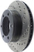 StopTech Drilled and Slotted Sport Rotors are 1-piece direct replacement brake discs for factory brake systems and stock calipers that look great behind your wheels – and offer significantly improved braking performance. The unique cross-drilling and slotting aids with heat and brake dust dispersal; prevents glazing of the pads; adds bite and improves wet and dry braking performance. Built to last; the black e-coating provides protection from corrosion and the high carbon metallurgy (in most applications) offers quieter operation; better crack resistance and increased performance.