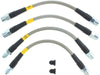 StopTech Stainless Steel Braided Brake Lines provide a quicker; firmer; more consistent pedal response by maintaining consistent brake pressure. Additionally; stainless steel lines provide precision brake modulation; especially during threshold braking. The improvement in pedal feel is more dramatic on older vehicles where the factory rubber line may have softened and swelled due to age. A variety of end fittings are available to meet application needs. All fittings are engineered for proper fit and durability. All necessary brackets and fasteners are included with each line kit.