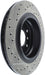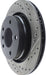 StopTech Drilled and Slotted Sport Rotors are 1-piece direct replacement brake discs for factory brake systems and stock calipers that look great behind your wheels – and offer significantly improved braking performance. The unique cross-drilling and slotting aids with heat and brake dust dispersal; prevents glazing of the pads; adds bite and improves wet and dry braking performance. Built to last; the black e-coating provides protection from corrosion and the high carbon metallurgy (in most applications) offers quieter operation; better crack resistance and increased performance.